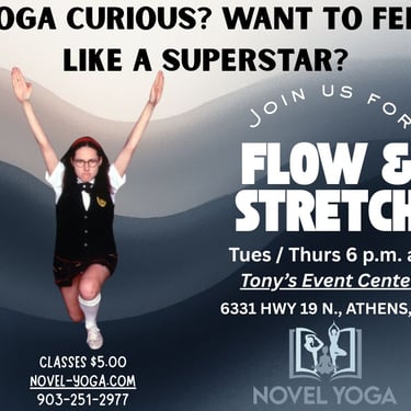 Novel Yoga was created for the Athens Community. Our first classes were held at the Henderson County Library - hence the name NOVEL Yoga! We make classes accessible to all body types, flexibility levels, and activity levels.